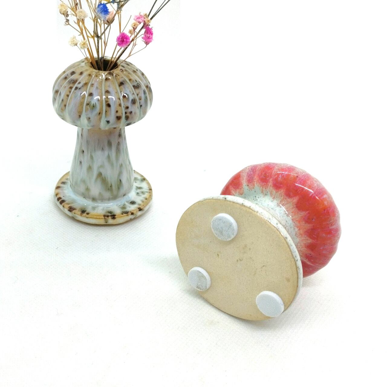 Size : 約 直径 5 x 高さ 5.5 ~ 7 cm 重量 : 約 85 g 素材 : ドロマイト(雲白石) 可愛いマッシュルームのベースです そのまま飾ってもいいし 頭に空いてる穴に植物・ドライフラワーを 挿せば もっと可愛いですよ ♪ デスクサイドでペン立てにしても可愛い 【 ご注意 】 画像のドライフラワーは 価格に含まれておりません